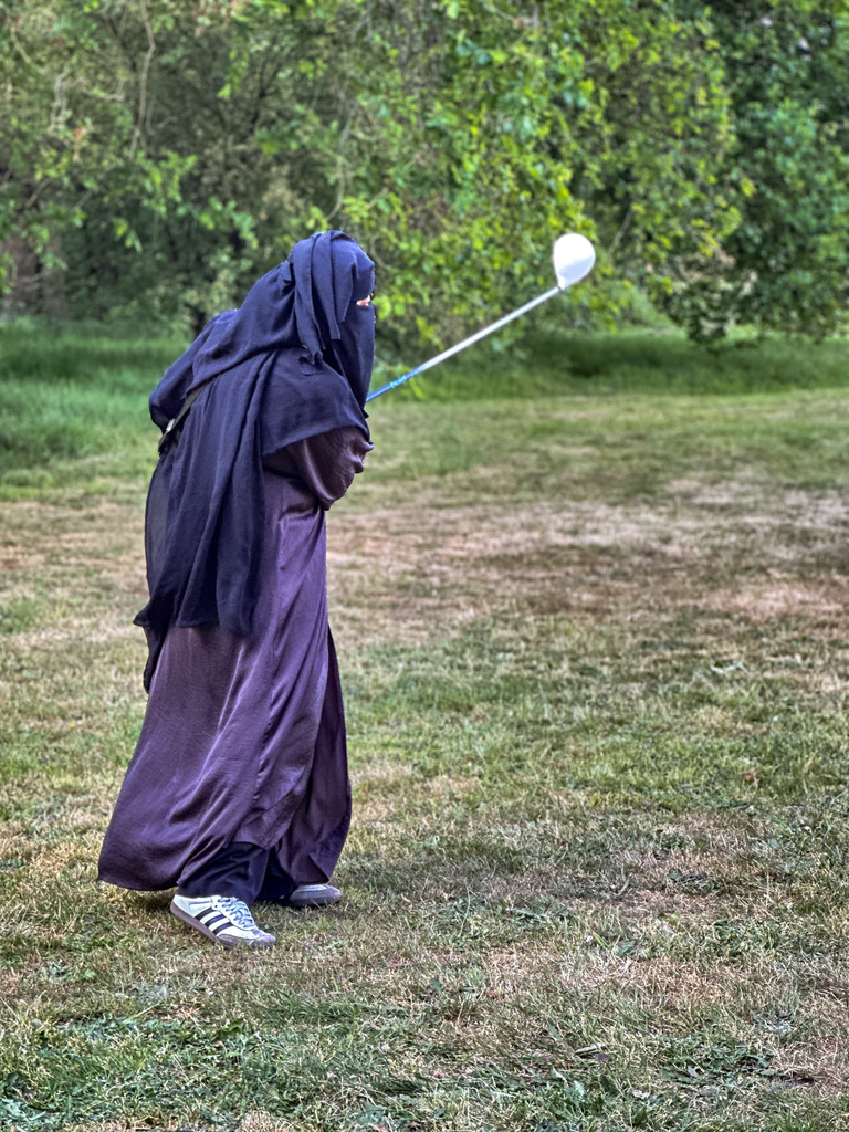 YES! We have created a private section dedicated just for you. We will show you that not even an abaya will get in the way of swinging a golf club, however, trainers will help 🙂